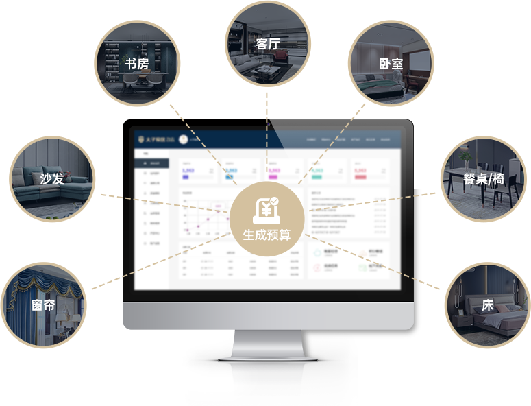 支持從全屋定制、家具沙發、軟裝配飾的全維度選配 并按采選產品即時生成預算